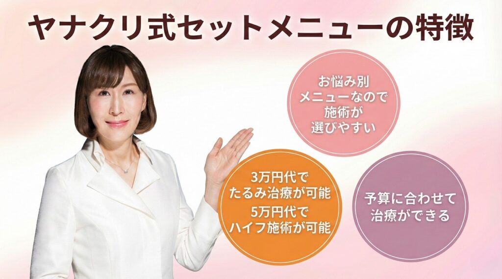 そんな患者様の声にお応えして生まれたのが「ヤナクリ式セットメニュー(あつこセレクト)」です。